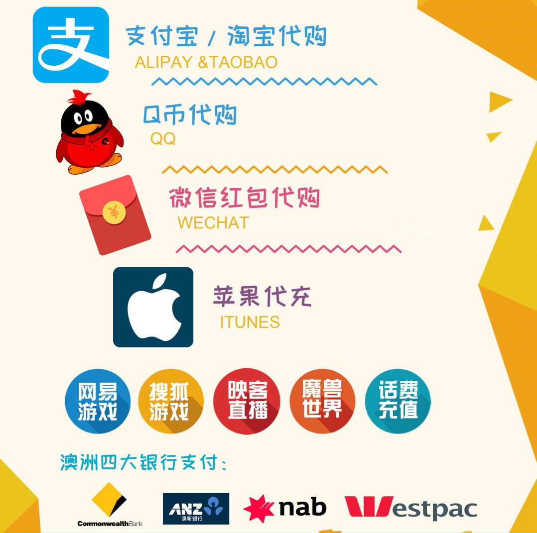②支持澳洲各大银行澳元支付。如Commonwealth Bank、ANZ bank、NAB、