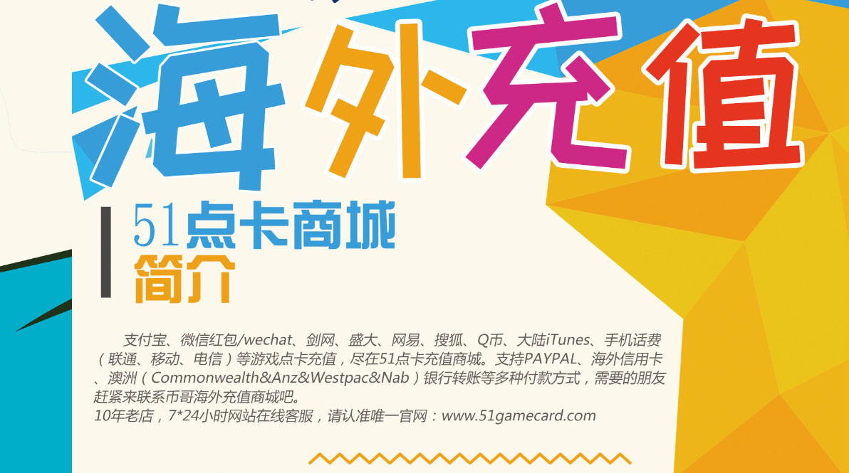 51点卡商城:www.51gamecard.com是专门服务于澳洲华人留学校,澳洲代充苹果itunes,淘宝代付,